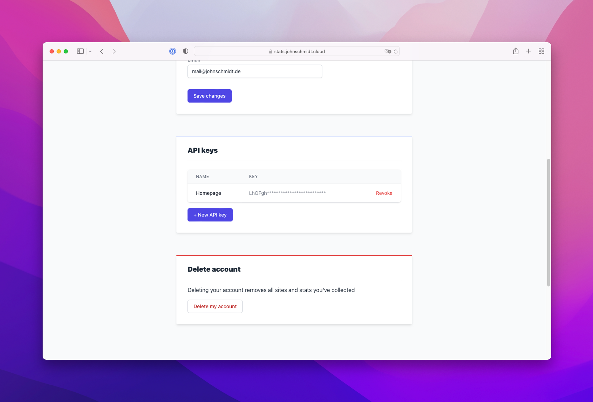 To work with our API, we first need to create an API token in our Plausible Analytics dashboard. You can find the corresponding option in your user settings.
